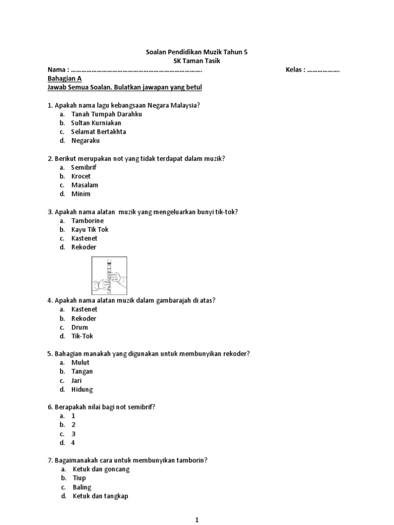 Soalan Pendidikan Muzik Tahun 5 Pdf